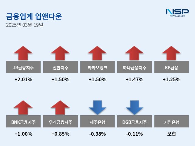 은행주 상승…JB금융↑·제주은행↓