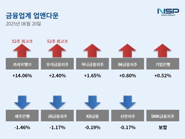은행주 상승…카카오뱅크 ‘52주신고가’↑·JB금융↓