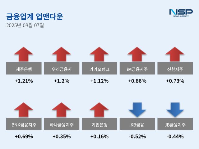 이날 가장 큰 상승률을 보인 종목은 제주은행이다. 제주은행은 전거래일 대비 1.21%(170원) 올라 1만4210원으로 장을 마쳤다.