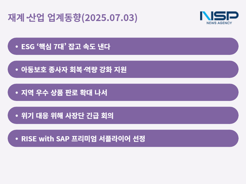 (서울=NSP통신) 최아랑 기자 = 환경과 안전, 데이터 기반 혁신, 지역과의 공존. 기업들이 저마다의 방식으로 변화에 대응하고 내부 역량을 재정비하고 있다. 외부 리스크를 점검하고 위기 대응 체계를 강화하는 한편 지속가능성 강화와 클라우드 전환, 지역 경제 활성화 등 실행 중심의 전략도 구체화되고 있다.