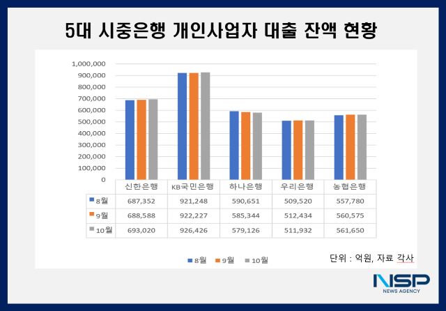 실제 개인사업자 대출 규모도 줄어들었다. 지난달 기준 하나은행과 우리은행의 개인사업자대출 잔액은 각각 57조 9126억원, 51조 1932억원으로 전월 대비 1.06%, 0.10% 감소했다.