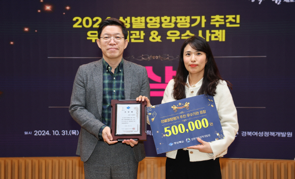 (경북=NSP통신) 김대원 기자 = 김천시(시장 김충섭)는 지난 10월 31일 경상북도 주관 2024년 성별영향평가 업무추진에 대해 우수기관으로 선정돼 도지사 표창을 수상했다.