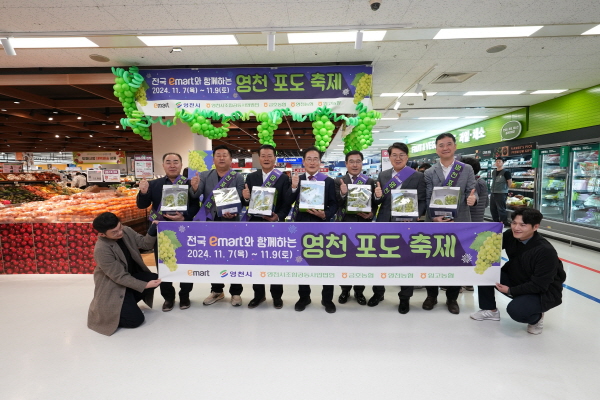 (경북=NSP통신) 김대원 기자 = 영천시(시장 최기문)는 8일부터 10일까지 3일간 ‘전국 이마트와 함께하는 영천포도축제’ 특판행사를 전국 이마트 130개점에서 동시에 실시한다.