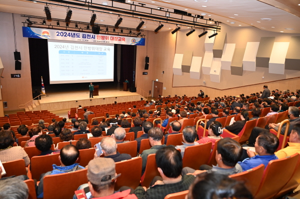 김천시는 지난 8일 김천시립 율곡도서관 율곡홀에서 관내 지역 및 직장민방위대장 500여 명을 대상으로 ‘2024년 민방위대장교육’을 실시했다. (사진 = 김천시)