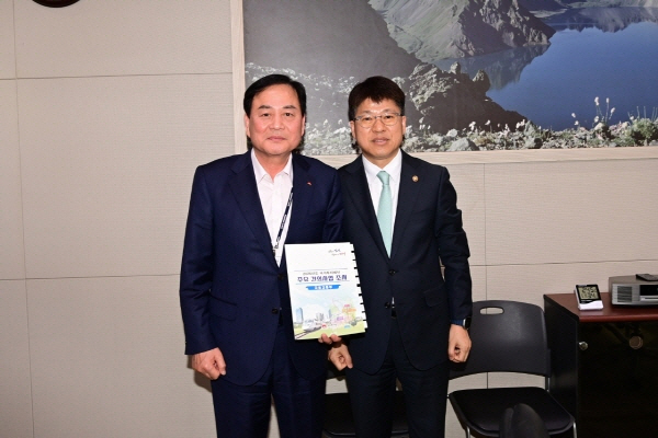 (경북=NSP통신) 김대원 기자 = 배낙호 김천시장은 8일 정부세종청사에서 진현환 국토교통부 제1차관을 만나 지역 현안에 대해 의견을 나누고 2026년도 국토교통부 정부예산안에 김천시 주요 사업들이 적극 반영될 수 있도록 건의하는 등 ‘발품 행정’에 구슬땀을 흘렸다.