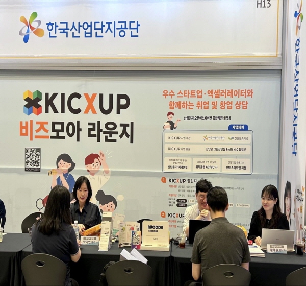 이날 한국산업단지공단 홍보관(KICXUP 비즈모아 라운지)에서는 ▲산업단지 우수 스타트업 취업 멘토링 ▲스타트업 창업 현장 상담 ▲인공지능(AI) 기반 스타트업 지원사업 연결 서비스 안내 및 회원가입 이벤트 등을 진행했다.