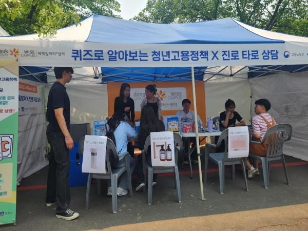 (경북=NSP통신) 조인호 기자 = 동국대 WISE캠퍼스 대학일자리플러스센터(센터장 하성)가 지난 28일부터 29일까지 2일간 대학 축제인 ‘2025학년도 임석대동제’ 기간 동안 ‘퀴즈로 알아보는 청년고용정책 & 진로 타로 상담’ 홍보 부스를 운영했다.