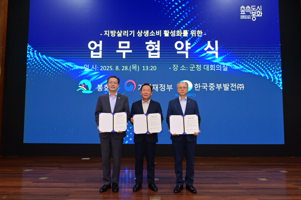 (경북=NSP통신) 김오현 기자 = 봉화군은 지난 28일 군청 대회의실에서 기획재정부, 한국중부발전와 함께 ‘상생소비 활성화를 위한 상생협력 업무협약식’을 개최했다.