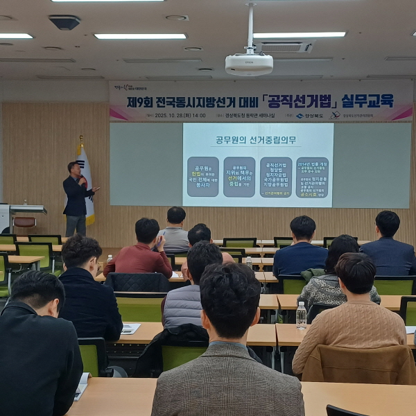 (경북=NSP통신) 조인호 기자 = 경상북도와 경상북도선거관리위원회는 내년 제9회 전국동시지방선거를 앞두고 공직자의 정치적 중립의무를 강화하고 선거 관련 법령 이해도를 높이기 위해 28일 도청에서 경북도 및 의회 실무자 100여 명을 대상으로 공직선거법 실무교육을 추진했다.