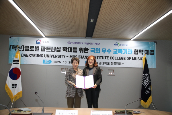 레이첼 윤 총장은 “MI는 오랜 전통의 음악 교육기관으로 대경대학교와의 협력을 통해 앞으로 아시아 음악교육 발전과 문화 교류를 강화하게 되어 성장이 기대된다”며 “대경대와 상호 교류를 통해 글로벌 뮤지션을 공동으로 성장시켜 나가는 기회가 되길 바란다”고 덧붙였다.
