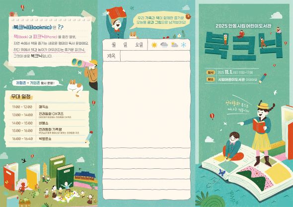 (경북=NSP통신) 김오현 기자 = 안동시립어린이도서관에서는 가을을 맞아 온 가족이 함께 어우러질 수 있는 책문화 축제 ‘2025년 안동시립어린이도서관 북크닉(Book+Picnic)’ 행사를 오는 11월 1일 오전 11시부터 오후 5시까지 개최한다.
