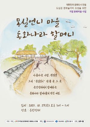 (경북=NSP통신) 김오현 기자 = 안동시(시장 권기창)가 대한민국 문화도시 조성사업의 일환으로 추진 중인 문화 거점마을 사업의 하나로 29일 오후 3시 일직면 운산리 운산장터에서 ‘동화나라 할머니 이야기 한마당’ 행사를 개최한다.