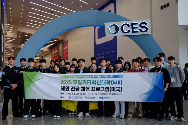 RISE 사업 일환으로 운영되는 모빌리티혁신대학은 지난 5일부터 12일까지 국제전자제품박람회(CES 2026)와 실리콘밸리 주요 기관 방문을 포함한 미국 해외전공체험 프로그램을 진행했으며 참여 대학 교수진과 학생들은 미래 모빌리티 기술의 흐름을 직접 확인했다.