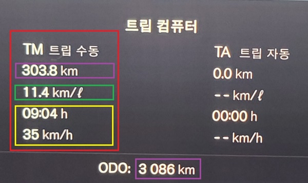총 303.8km를 다양한 도로 조건에서 35km/h의 평균속도로 9시간 4분 동안 시승한 후 체크한 볼보 XC40 AWD 울트라 트림의 실제 주행 연비는 공인 복합연비 10.3km/L를 1.1km/L 초과한 11.4km/L를 기록해 매우 만족스러웠다.