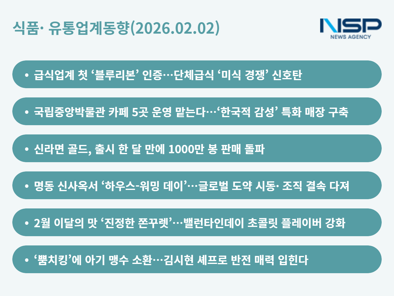 (서울=NSP통신) 옥한빈 기자 = 식품·유통업계의 경쟁 축이 한층 다층화되고 있다. 아워홈은 단체급식 최초로 ‘블루리본’ 인증을 따내며 급식의 기준을 가격에서 ‘맛’으로 끌어올렸고 이디야는 국립중앙박물관 입점을 통해 ‘가성비 커피’를 넘어 ‘K-카페’ 정체성 확장에 나섰다. 라면 시장에서는 농심이 ‘신라면 골드’로 40주년 기념작 흥행에 성공하며 브랜드 실험의 성과를 빠르게 입증했다. 삼양은 명동 신사옥에서 내부 결속과 글로벌 전략을 재정비하며 성장 국면의 다음 단계를 준비 중이다. 여기에 배스킨라빈스와 BBQ는 각각 ‘쫀꾸렛’과 ‘뿜치킹’으로 취향·캐릭터 마케팅을 강화하며 소비자 접점을 세분화하고 있다. 전통·공간·헤리티지·트렌드가 맞물린 이번 흐름은, 업계 전반이 단순 판매를 넘어 ‘브랜드 해석력’을 겨루는 국면에 들어섰음을 보여준다.