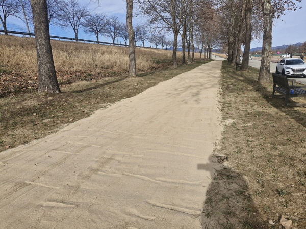 이번 사업은 사업비 7억6천여만 원을 투입해 낙동강 편의점에서 수자원공사 정수장까지 이어지는 2.5km 구간을 대상으로 추진됐다. 기존 맨발길 1.7km를 전면 정비하고 미정비 구간 0.8km를 새로 조성해 시민들이 신발을 벗고 자연의 촉감을 느끼며 걸을 수 있는 건강 보행 공간으로 완성했다.