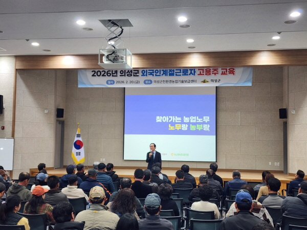 (경북=NSP통신) 조인호 기자 = 의성군(군수 김주수)은 농촌 인력난 해소와 외국인 계절근로 사업의 안정적 운영을 위해 지난 20일 ‘2026년 외국인 계절근로자 고용주 사전교육’을 실시했다.