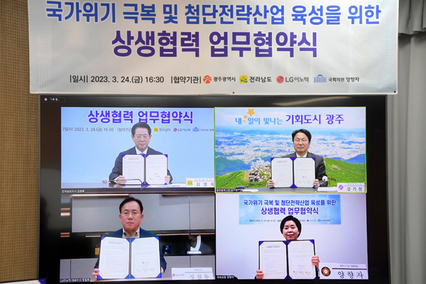 이날 온라인으로 진행된 협약식에는 양향자 의원, 강기정 광주광역시장, 김영록 전남도지사, 정철동 LG 이노텍 대표가 참석해 협약서에 서명하고 향후 계획에 대한 의견을 나누었다.