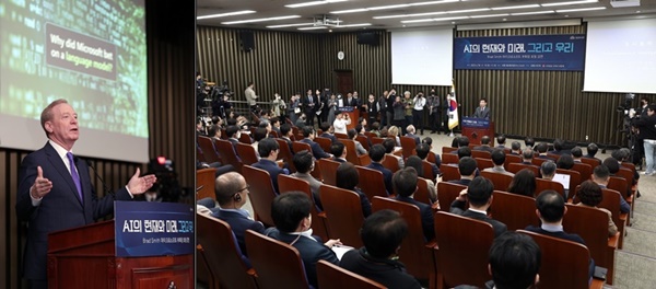 NSP통신-브래드 스미스 마이크로소프트(MS) 부회장의 국회 강연 모습