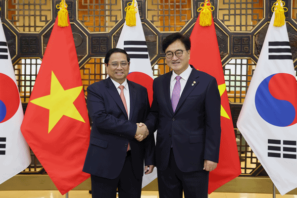 우 의장은 먼저 “총리님의 이번 방한은 양국 관계가 2022년 12월 ‘포괄적 전략 동반자 관계’로 격상된 이후 베트남 최고위급 인사의 첫 공식 방한이다”며 “어제(7.1.) 총리님 참석 하에 양국 비즈니스·노동·문화 환광 포럼이 성공적으로 개최된 것을 축하한다”고 말했다.