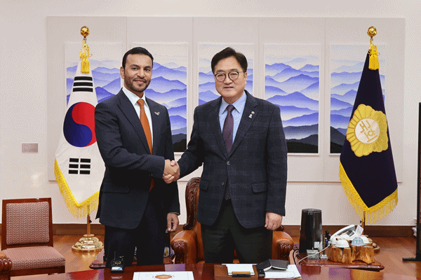 또 우 의장은 “양국이 투자, 방산, 에너지 분야 등을 중심으로 견고한 협력관계를 발전해 나가고 있다”며 “UAE 국부펀드의 한국 투자 및 방산 계약에서 앞으로 좋은 성과가 있길 기대하며, 양국 간 에너지 협력이 석유, 가스를 넘어 청정수소의 생산, 태양광 등으로 확대되어 나갈 수 있길 바란다”고 말했다.