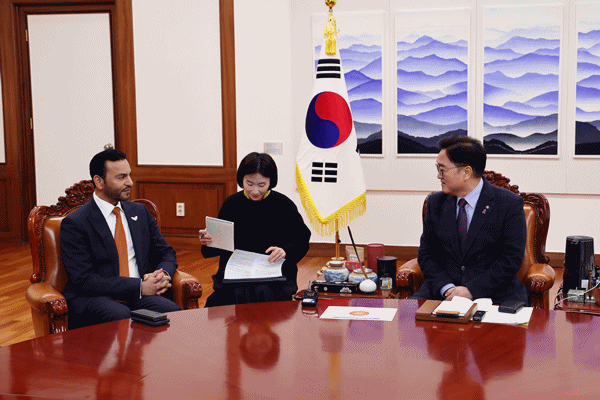 (서울=NSP통신) 강은태 기자 = 우원식 국회의장은 7일 오후 의장집무실에서 알 누아이미 주한UAE대사를 만나 한-UAE 관계 등에 대해 의견을 교환했다.