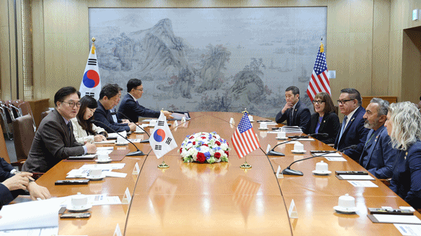 (서울=NSP통신) 강은태 기자 = 우원식 국회의장은 17일 오전 국회접견실에서 아미 베라, 제니퍼 키건스 하원의원 등 미국 의회 코리아스터디그룹(CSGK) 방한단을 만나 굳건한 한미동맹에 대한 초당적 지지, 양국 의회간 교류 활성화, 경제·안보 협력 강화 등 현안에 대해 의견을 교환했다.