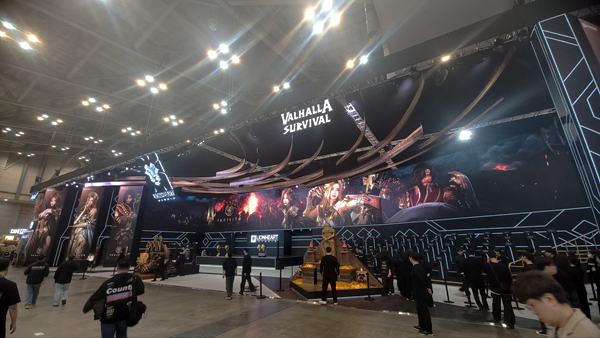부스 디자인은 오픈형 시연 및 이벤트 존과 실내형 체험 공간을 균형감 있게 배치한 것이 특징이다. 또 부스 중앙에는 대표 개발작인 오딘: 발할라 라이징(이하 오딘)의 조형물을 포토존으로 배치해 오딘 개발사로서 정체성도 돋보이도록 했다.