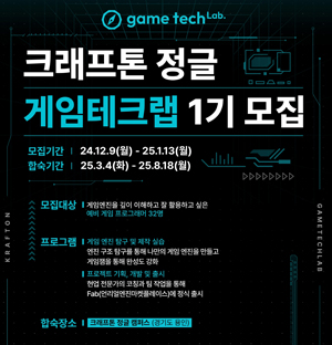 (서울=NSP통신) 이복현 기자 = 크래프톤(대표 김창한)이 ‘크래프톤 정글 게임테크랩(이하 게임테크랩)’을 새롭게 개설하고, 인재 양성 프로그램을 확대한다.