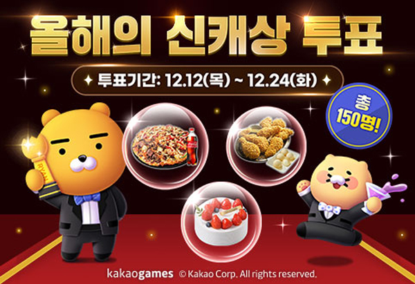 뿐만 아니라 이벤트 참여만으로도 다양한 경품에 응모할 수 있다. 추첨을 통해 총 150명에게 치킨, 피자, 케이크 등 먹거리 경품 교환권을 제공할 예정이다. 캐릭터상 투표 결과 및 경품 당첨자 발표는 오는 31일 이벤트 페이지와 개별 연락으로 공지될 예정이다.