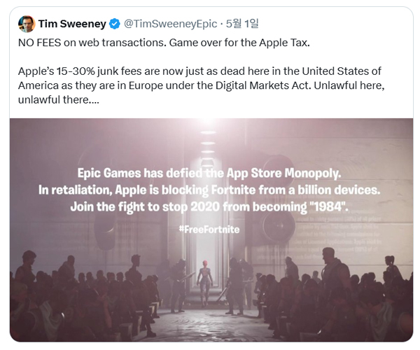 (서울=NSP통신) 이복현 기자 = 미국 캘리포니아 연방법원이 5월 1일(현지 시각) 에픽게임즈와 애플 간 소송에서 애플이 법원의 명령을 고의로 위반했다고 판결했다.