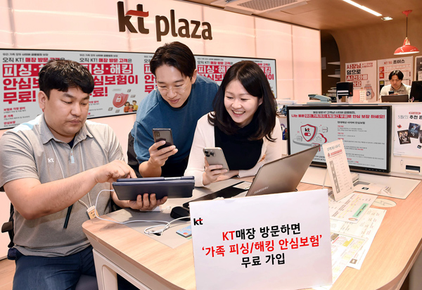 한편 KT는 5월 27일부터 8월 31일까지 전국 KT 매장을 방문하는 고객을 대상으로, 가족까지 보장되는 ‘피싱·해킹 안심 보험’을 6개월간 무료로 제공하는 프로모션을 진행한다.
