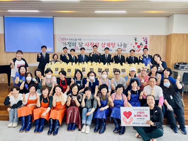 (서울=NSP통신) 강은태 기자 = 경향복지재단 성민종합사회복지관(관장 나상희)은 13일 서울시 관악구 신림동 왕성교회 6층 식당에서 1인 가구 독거노인들을 위한 삼계탕 나눔 행사를 개최했다.