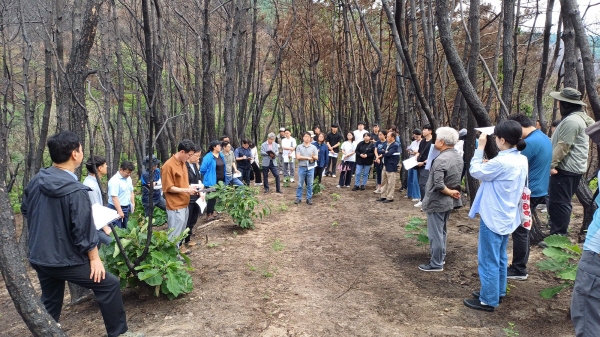 이번 현장토론회는 ‘자연·인공복원의 합리적 결정 및 활엽수림 확대’를 주제로 산불피해지의 체계적이고 지속가능한 복원 방향을 모색하기 위해 마련됐다.