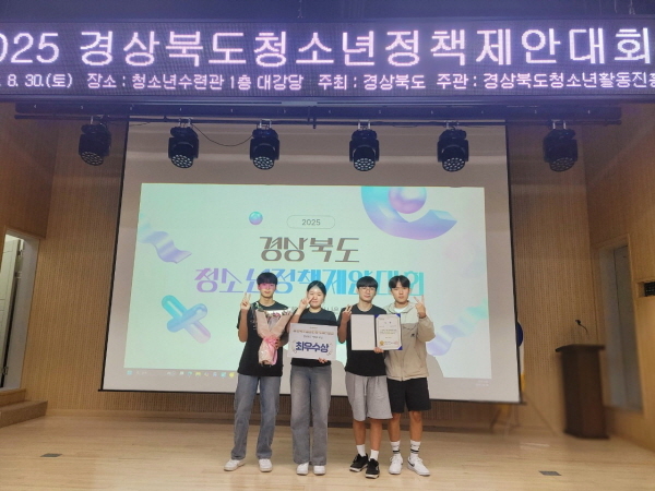 (경북=NSP통신) 김대원 기자 = 울진군(군수 손병복) 청소년참여위원회가 지난 8월 30일 안동시청소년수련관에서 열린 ‘2025경상북도청소년정책제안대회’에서 최우수상(경상북도 의회의장상)을 수상했다.