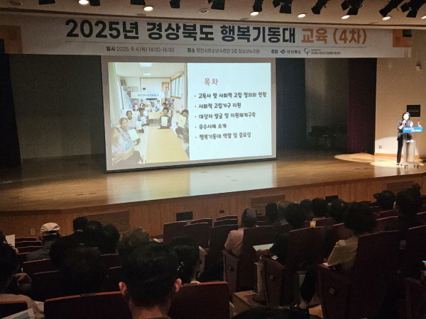 이번 교육은 경상북도사회적고립예방지원센터 주관으로 영천·포항·경주·경산·청도 등 5개 시·군의 행복기동대와 시·군·읍·면·동 담당자 등 약 200명이 참석한 가운데 진행됐다.
