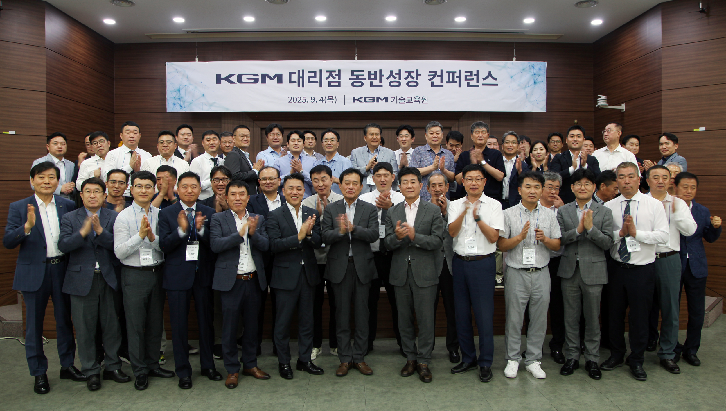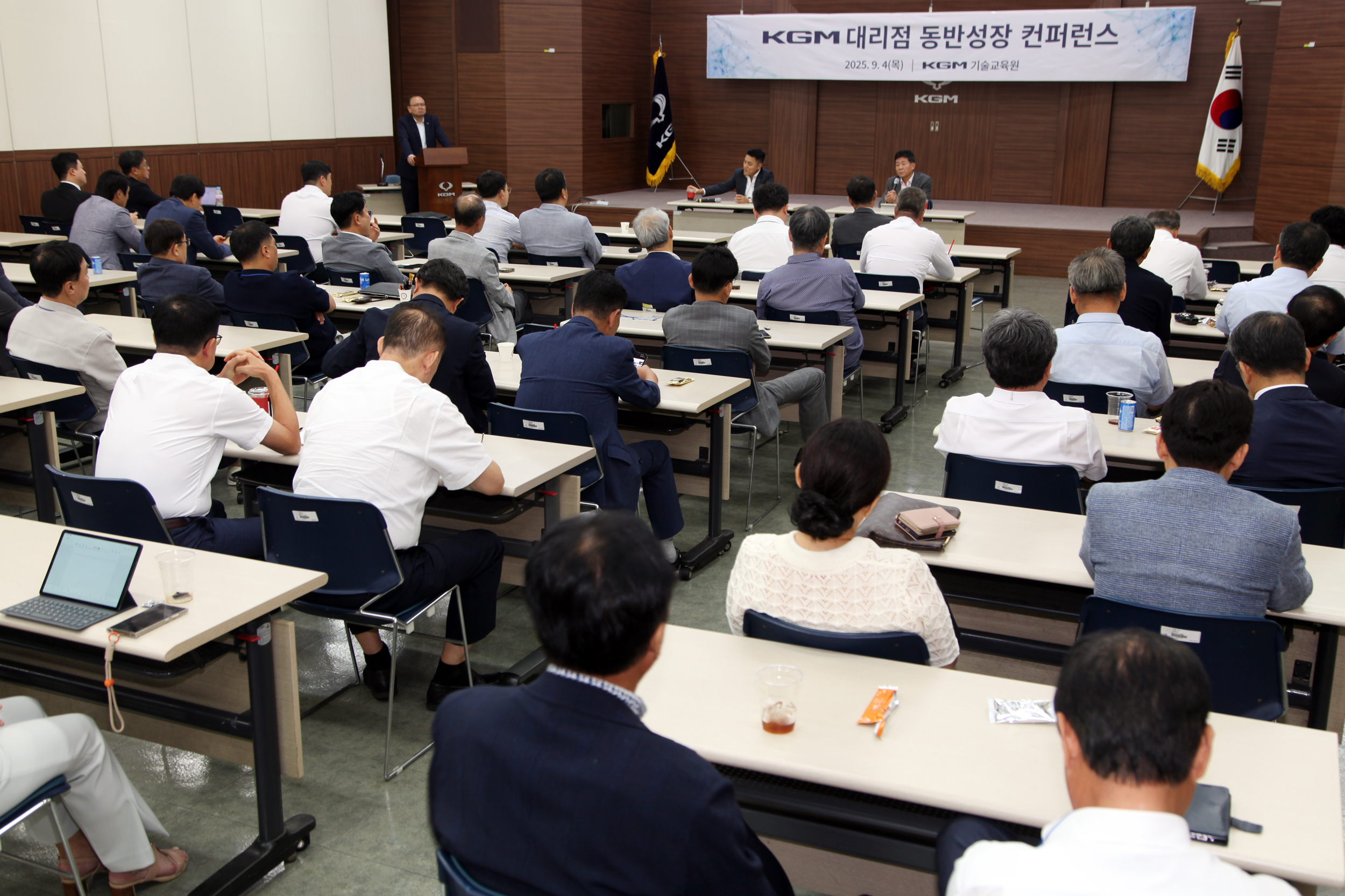 지난 4일 KGM 기술교육원(대전 대덕구 소재)에서 황기영 대표이사 및 박경준 국내사업본부장을 비롯해 전국 대리점 대표 등 관련 임직원이 참석한 가운데 ‘KGM 대리점 동반성장 콘퍼런스’를 열었다.