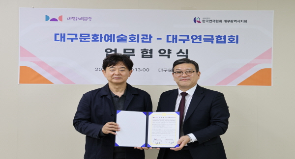 이홍기 대구연극협회장은 “대구문화예술회관과의 협력은 지역 연극인들에게 안정적인 무대와 창작 기회를 제공하는 큰 힘”이라며 “이번 협약을 계기로 원로와 청년이 함께 성장하고 지역 연극이 세대를 넘어 더욱 활발하게 발전할 수 있기를 기대한다”고 말했다.