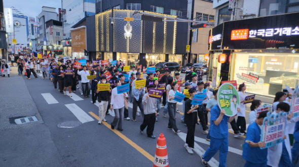 참여자들은 ‘의대 유치, 경북 안동’, ‘의대 유치, 다 함께’라는 구호를 외치며 원도심을 행진하여 축제장을 찾은 국내외 관광객과 시민들의 이목을 끌었다.