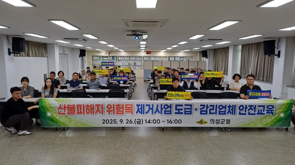 (경북=NSP통신) 조인호 기자 = 의성군(군수 김주수)은 지난 26일 의성군청 대회의실에서 산림사업법인, 산림기술엔지니어링, 관계 공무원을 대상으로 ‘산불피해지 위험목 제거사업 특별 안전교육’을 실시했다.