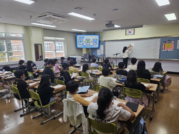 경상북도 환경보건센터는 22일 울릉도 천부초등학교, 23일 울릉도 남양초등학교, 24일 포항 대이초등학교에서 총 78명의 학생을 대상으로 5회기 수업을 진행했다. 수업은 1교시 기후위기 이론 교육에 이어 2교시 체험교육으로 구성됐다. 저학년은 AR(증강현실) 체험과 딱지북 활동을, 고학년은 코딩봇을 활용한 코딩게임을 통해 탄소중립과 기후위기 대응법을 쉽고 재미있게 배울 수 있도록 제공했다.