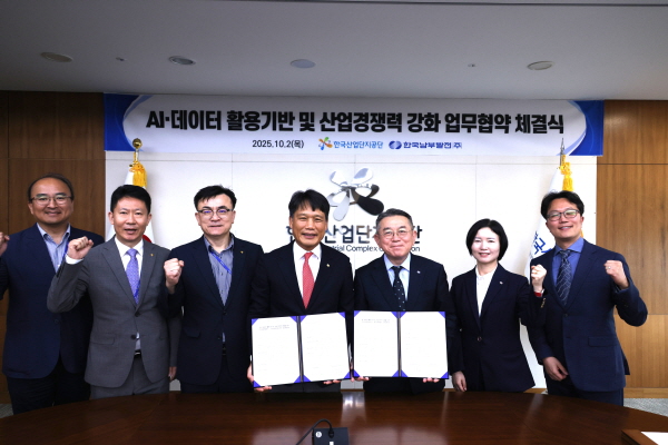 NSP통신-한국산업단지공단과 한국남부발전은 2일 대구 한국산업단지공단 본사에서 산업·에너지 분야의 AI 기술 고도화와 데이터 공동 활용을 통한 디지털 혁신을 추진하기 위한 업무협약(MOU)을 체결했다. (사진 = 한국산업단지공단)
