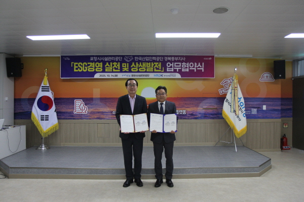 (경북=NSP통신) 조인호 기자 = 포항시시설관리공단(이하 공단)은 한국산업인력공단 경북동부지사와 ESG경영 실천 및 상생발전을 위한 업무협약을 지난 14일 체결했다.