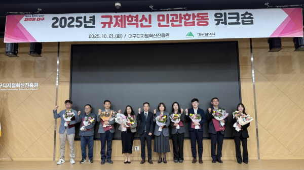 (경북=NSP통신) 김대원 기자 = 대구광역시는 규제혁신 담당자들의 역량을 키우고 민관협력을 활성화하기 위해 지난 21일 대구디지털혁신진흥원에서 ‘2025년 규제혁신 민관합동 워크숍’을 개최했다.