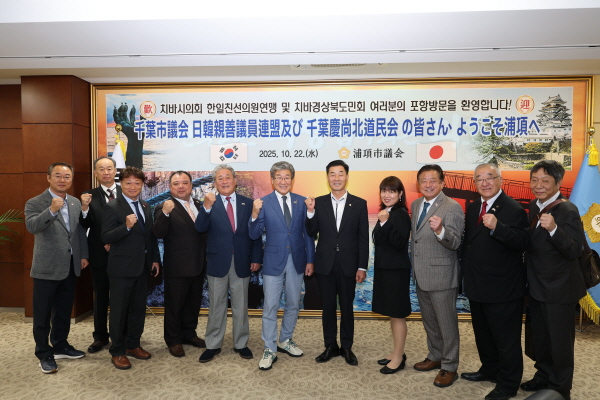 김일만 의장은 환영 인사말에서 “우리 포항과 치바시는 제철과 항만을 중심으로 발전해 온 비슷한 역사를 갖고 있다”며 “이번 만남을 계기로 두 도시가 다양한 분야에서 함께 배우고 성장해 나가길 기대한다”고 밝혔다.