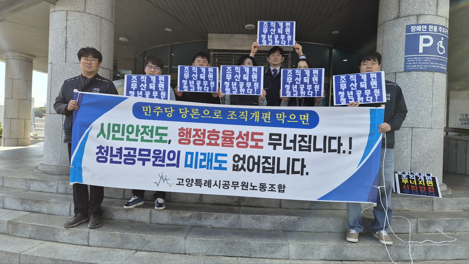 또 시 공무원노조는 “노후화된 1기 신도시와 잇따른 싱크홀·건물 균열 등 구조적 위험이 심각한 상황에서, 인력 재배치와 현장 대응 조직 강화는 시급한 과제임에도 전국에서 유일하게 (고양시에는) 구조물 전담 재난 안전 부서가 없다”고 지적했다.