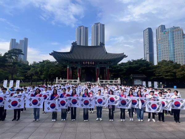 참가자들은 독도사랑 티셔츠를 착용하고 대구 시민정신이 깃든 국채보상운동기념공원에서 태극기를 활용한 열정적인 율동으로 독도의 소중함과 주권의 의미를 시민들에게 전했다.