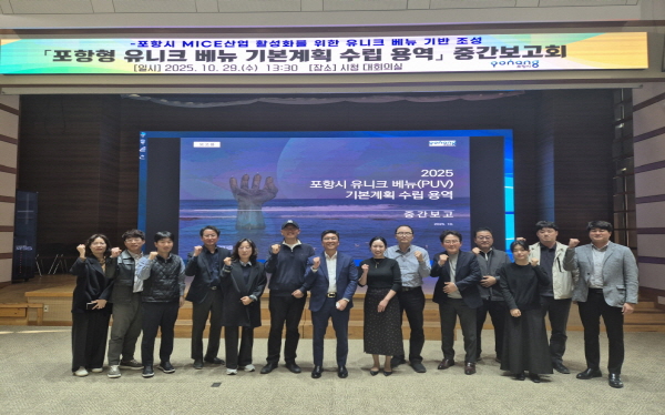 시는 29일 시청 대회의실에서 ‘포항형 유니크베뉴 기본계획 수립 용역’ 중간보고회를 열고 추진 현황과 향후 실행 방향을 논의했다.