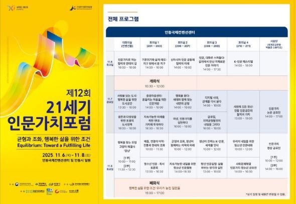 안동시 관계자도 “다양한 분야의 국내외 전문가들의 깊이 있는 통찰과 토론을 한 자리에서 볼 수 있는 좋은 기회인 만큼 많은 시민의 적극적인 참여를 기대한다”고 전했다.