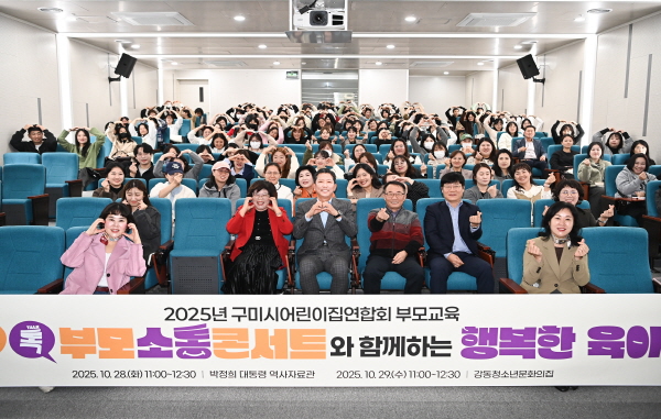(경북=NSP통신) 조인호 기자 = 구미시는 28일과 29일 2일간 박정희대통령역사자료관 세미나실과 강동청소년문화의집 강당에서 ‘부모 교육-톡(Talk)! 톡(Talk)! 부모 소통 콘서트’를 진행했다. 이번 교육은 구미시어린이집연합회(회장 권인옥)가 주관하고 어린이집 원아 부모 300여 명이 참석했다.